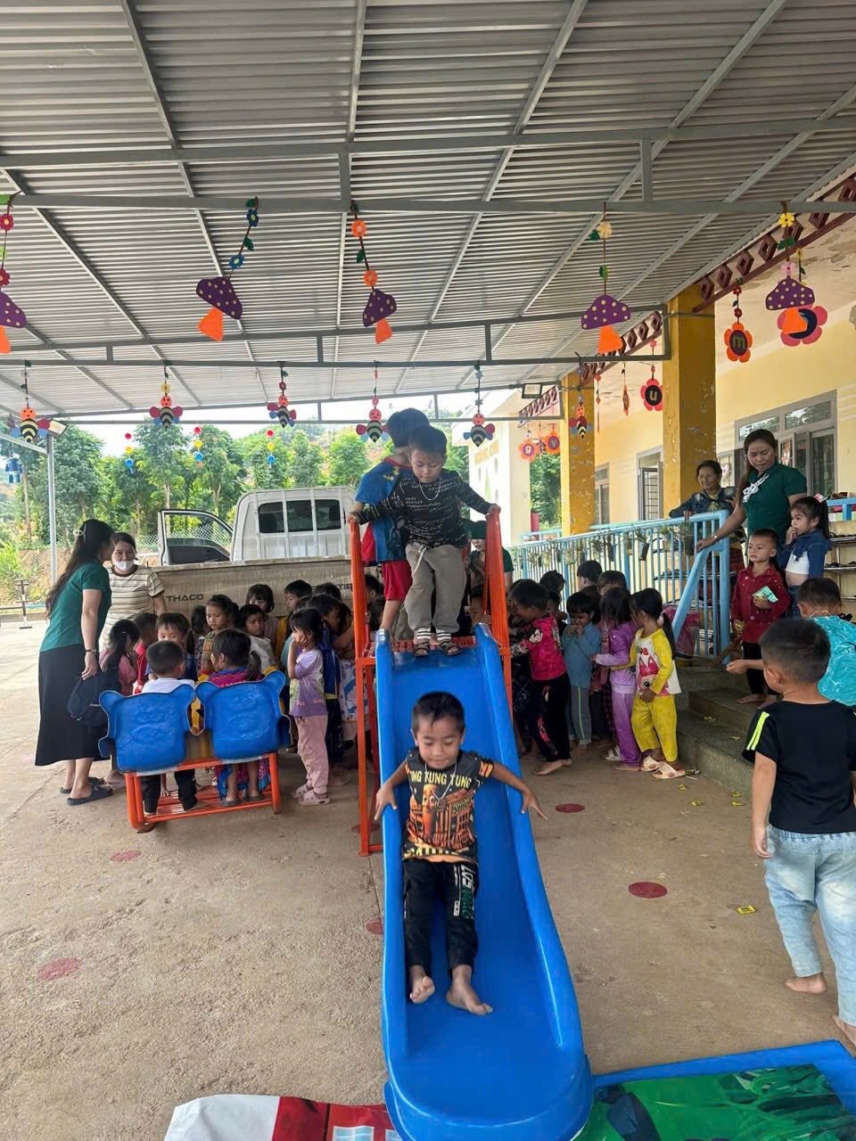 Chiều nay ngày 16/12/2025 Câu Lạc Bộ Ánh Nhung (Gia Nghĩa) đã đến và trao tặng cho phân hiệu thôn Phú Vinh Trường Mầm Non Hoàng Anh Xã Quảng Phú Tỉnh Lâm Đồng những món quà vô cùng ý nghĩa gồm đồ chơi ngoài trời (cầu trượt, bập bênh) cùng bánh, sữa, kẹo.